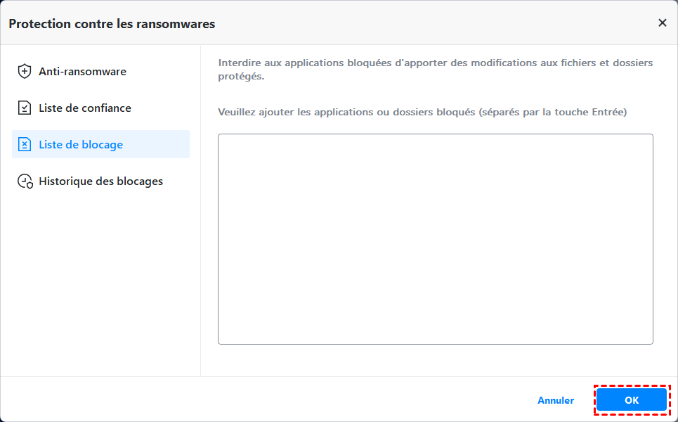 4. Il vous permet aussi d'ajouter les applications suspect dans une liste de blocage.