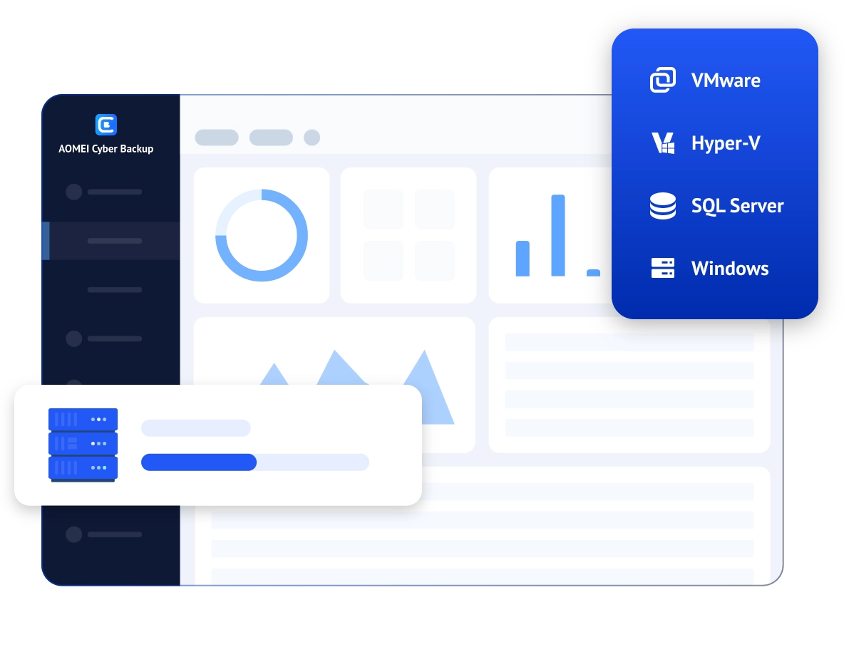 AOMEI Cyber Backup est un logiciel de sauvegarde d'entreprise centralisé. Il propose des méthodes de sauvegarde avec et sans agent. Les objets de sauvegarde incluent VMware, Hyper-V, les bases de données SQL et les PC/serveurs Windows, etc.