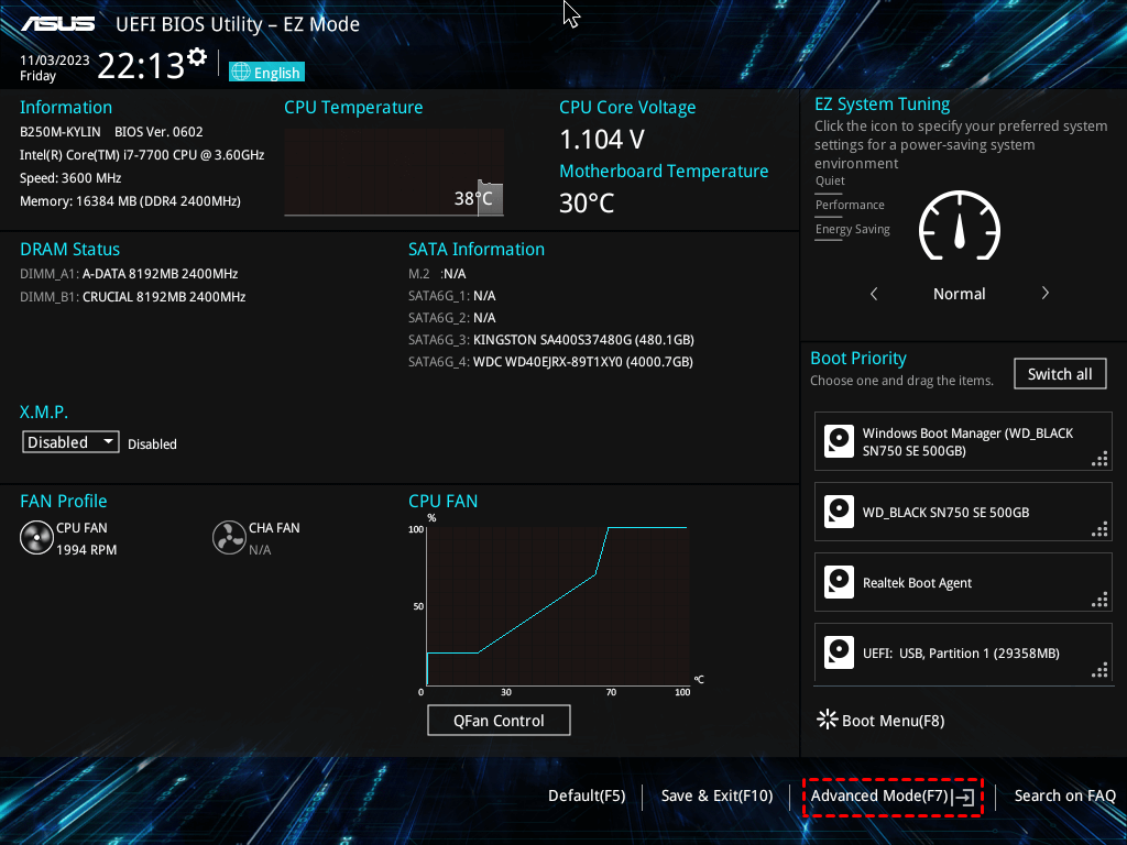 4. Après être entré dans la configuration du BIOS, utilisez le curseur pour cliquer sur [Advanced Mode] qui apparaît à l'écran.