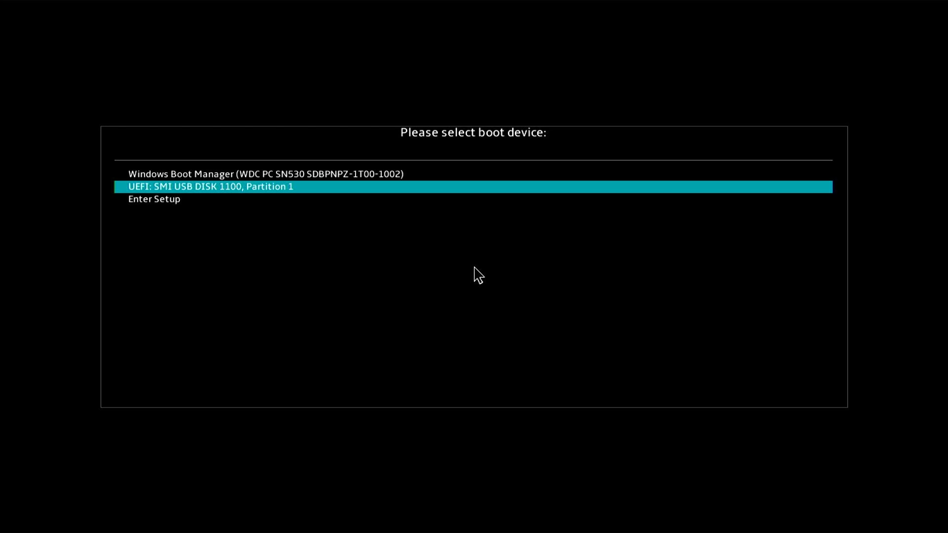 2. Utilisez les touches fléchées de votre clavier pour sélectionner la clé USB et appuyez sur Entrée. L'ordinateur redémarrera immédiatement et démarrera à partir de la clé USB.