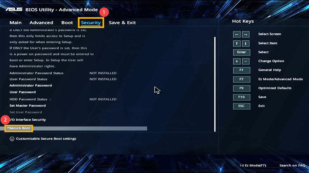 Pour désactiver le démarrage sécurisé, accédez à l'écran [Security], puis sélectionnez [Secure Boot].