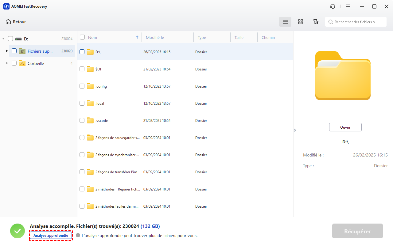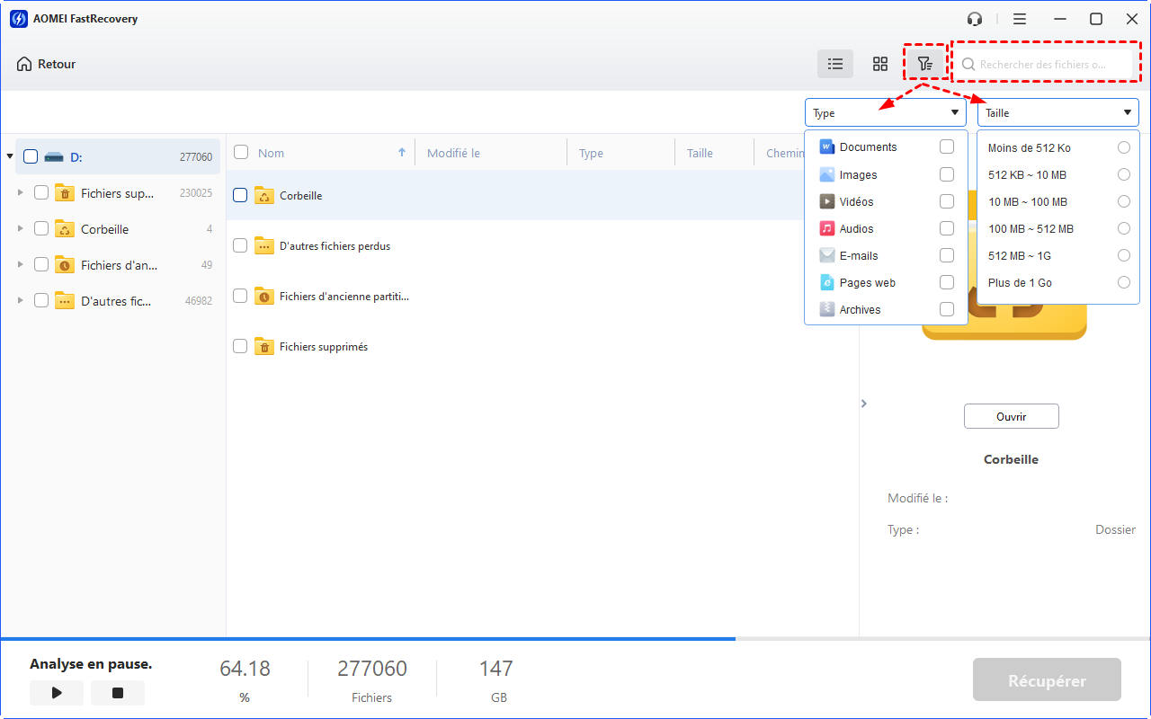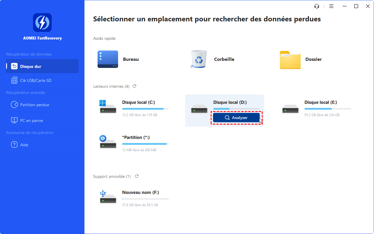 Comment analyser les données perdues dans AOMEI FastRecovery