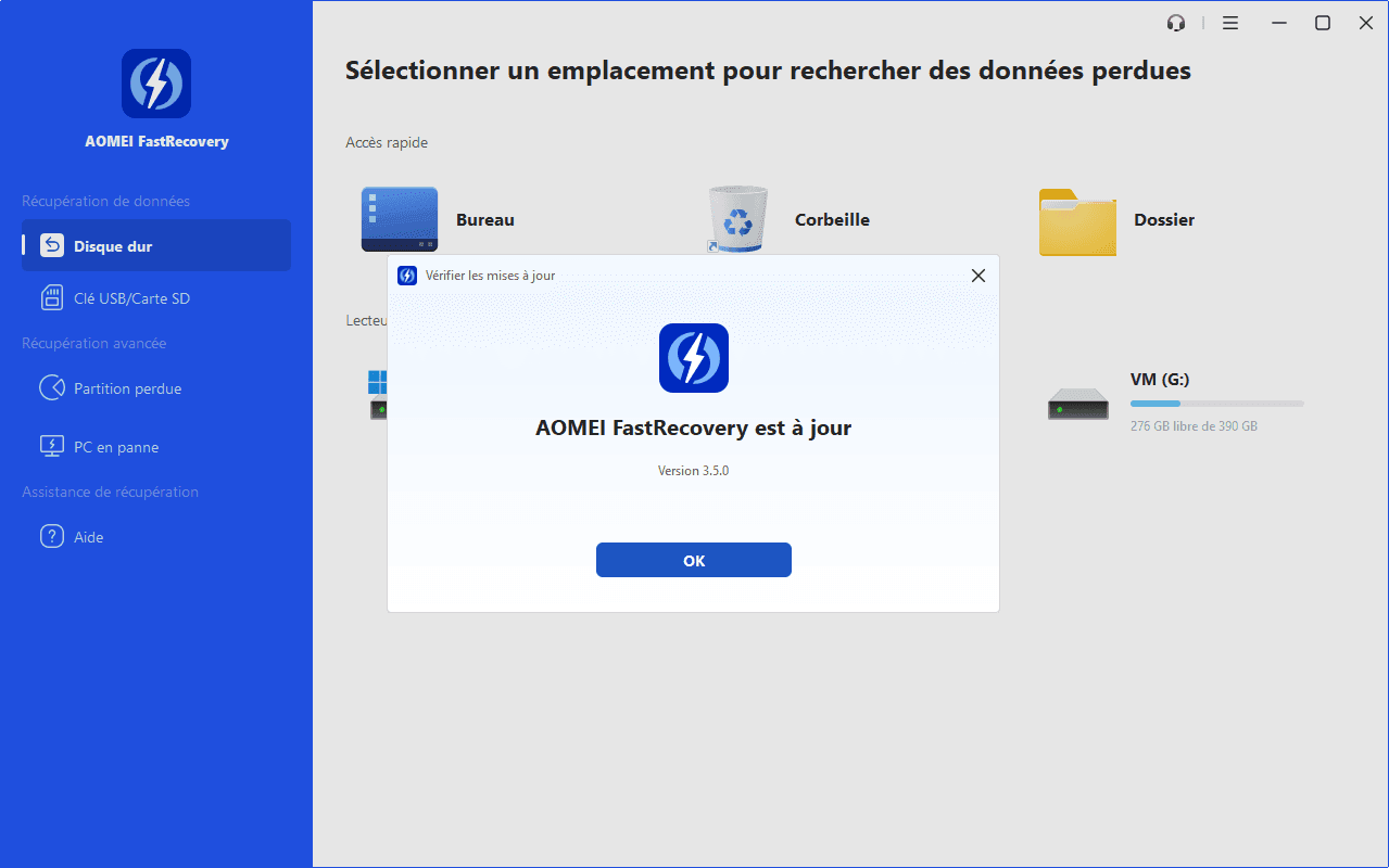Comment mettre à jour la version dans AOMEI FastRecovery