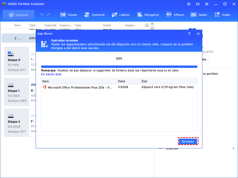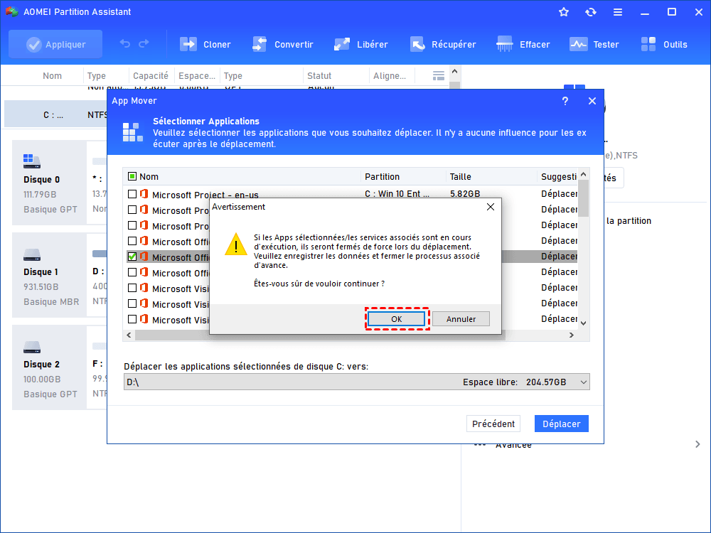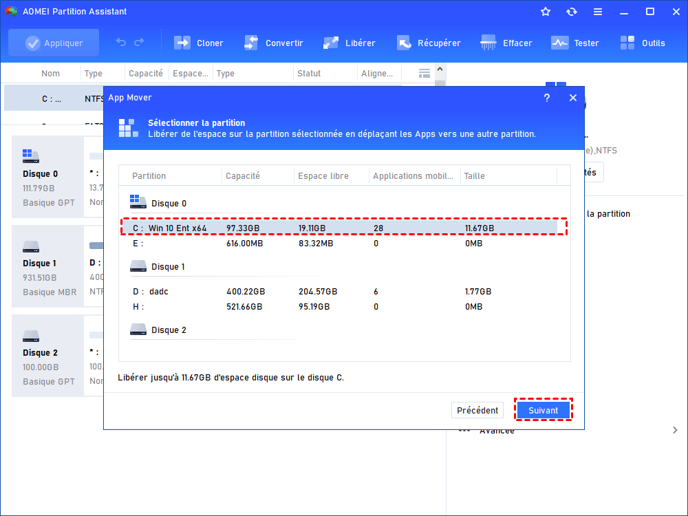 🔍 Maintenant, nous vous montrons comment utiliser AOMEI Partition Assistant pour déplacer un programme du disque C vers disque D sans réinstaller.