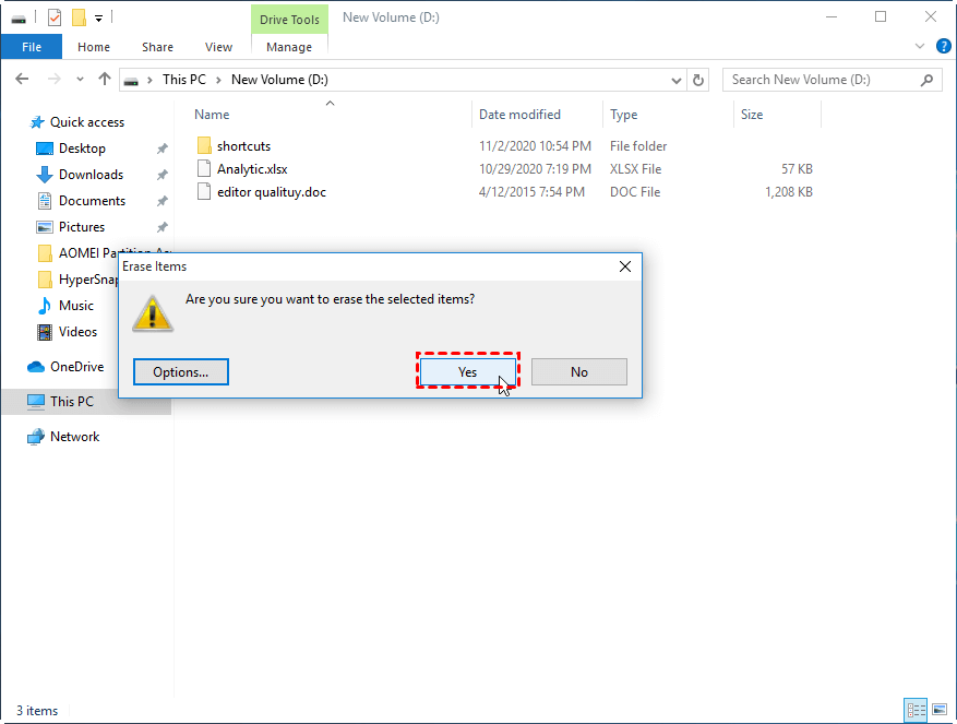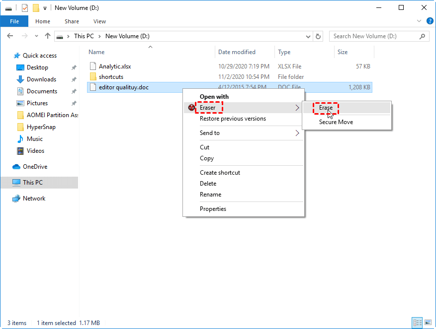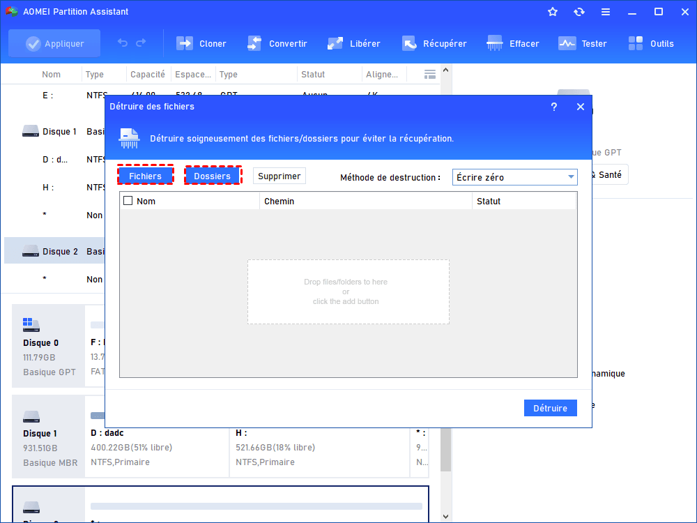 Étapes pour effacer des fichiers ou un disque avec AOMEI :
