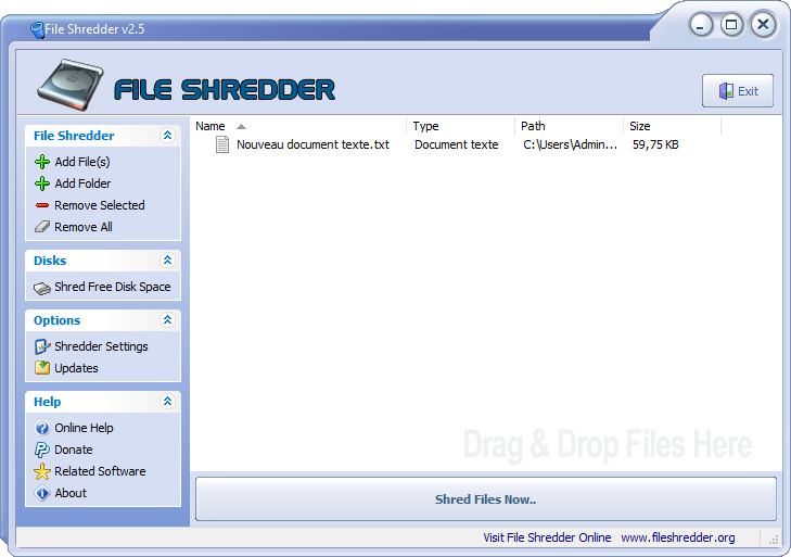 Étape 5 : Cliquez sur Shred Files Now.