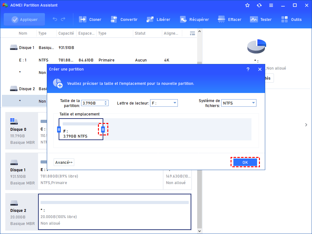 5. Cliquez sur OK, puis sur « Appliquer » en haut à gauche. Le logiciel crée une nouvelle partition propre. Votre carte est maintenant reconnue comme une clé USB toute neuve.