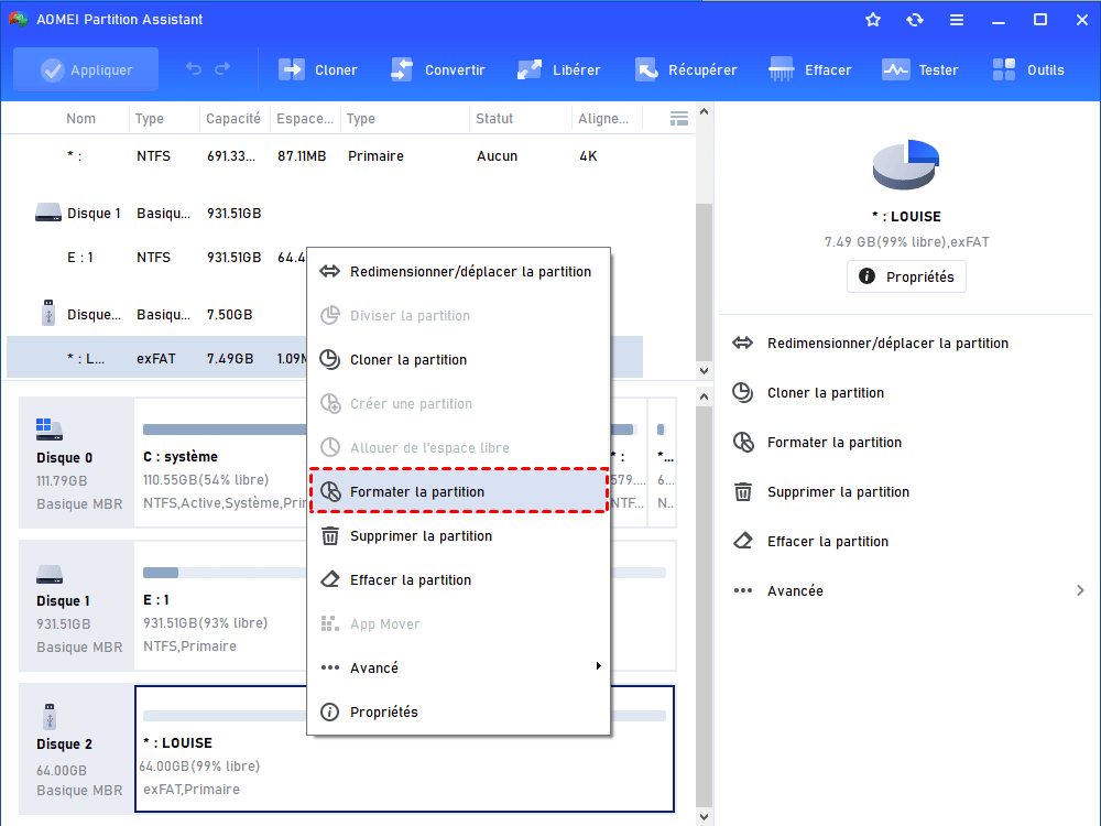 2. Faites un clic droit sur la partition de la carte SD, choisissez « Formater la partition ».