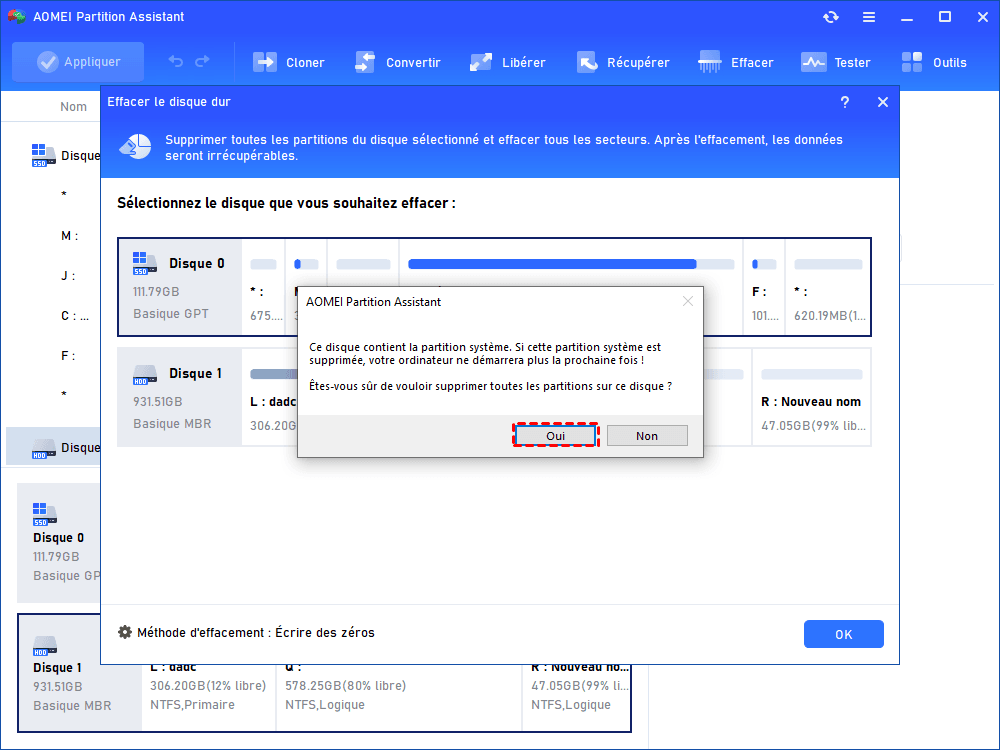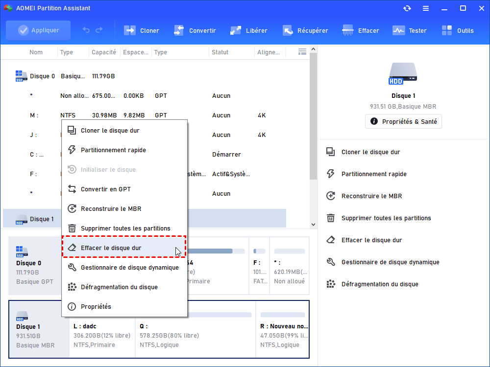 Heureusement, comme un logiciel tout-en-un, AOMEI Partition Assistant permet aussi d'effacer le disque dur contre la récupération, pratique pour protéger les données sensibles.
