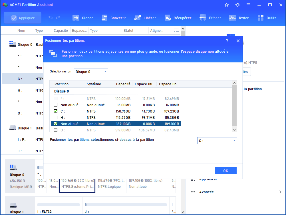 Fusionner deux partitions sans perte de données avec AOMEI Partition Assistant Standard | Gratuit 🔥