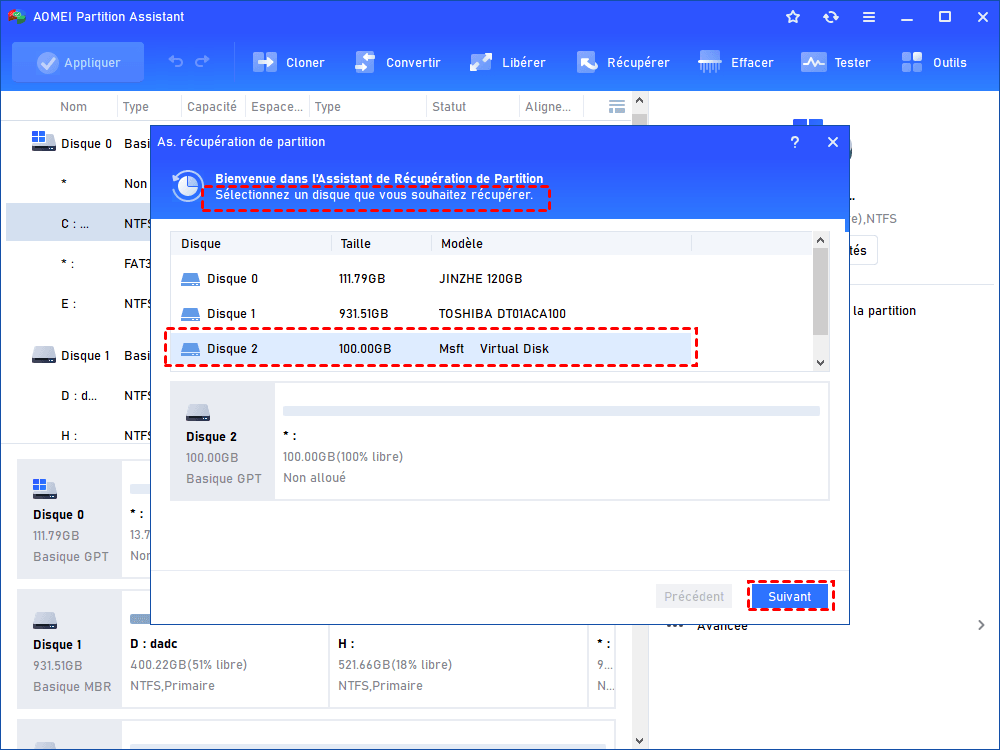 🔔 Attention : si de nouvelles données ont été écrites sur l’espace du disque après la suppression de la partition, les informations d’origine peuvent être écrasées, rendant la récupération de la partition impossible.