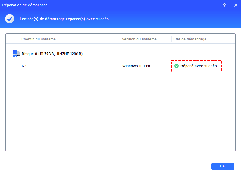 Étape 4 : Lancer la réparation du démarrage