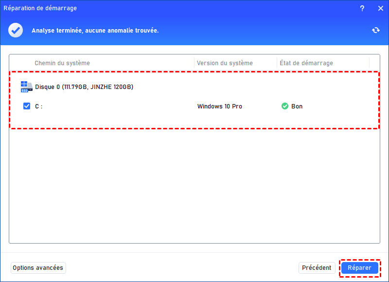Étape 3 : Lancer la réparation du démarrage