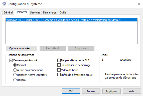 Lorsque plusieurs systèmes sont détectés, Windows affiche un menu de sélection pendant quelques secondes. Si vous utilisez toujours le même système, ce menu devient inutile.