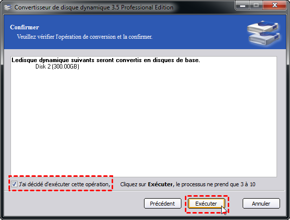 Pour convertir un disque dynamique en disque de base directement et sans perte de données, sans passer par les étapes complexes de sauvegarde et de restauration, la meilleure solution consiste à utiliser un logiciel tiers.