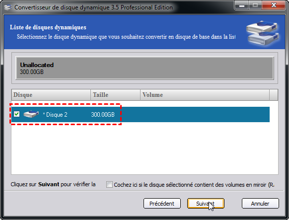 Étape 4 : Sélectionnez le disque dynamique, cliquez sur Suivant,