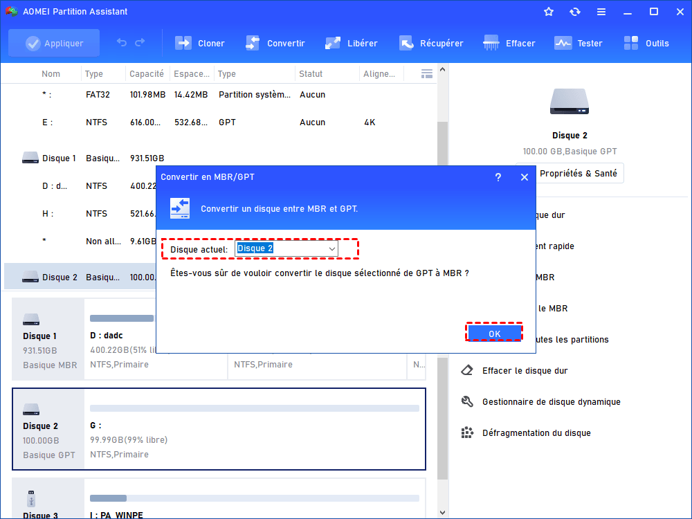 Étape 4 : Convertir en GPT/MBR