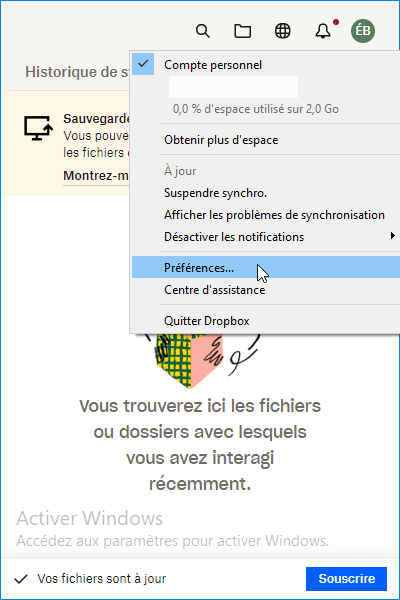 Méthode 1 : Déplacer le dossier Dropbox via les préférences Dropbox