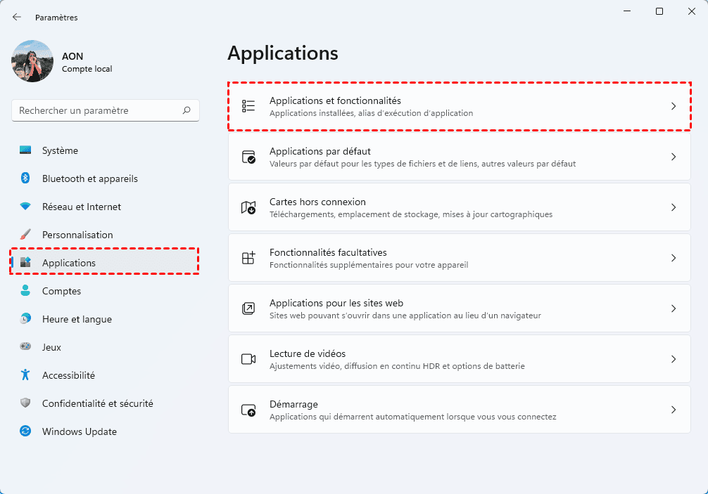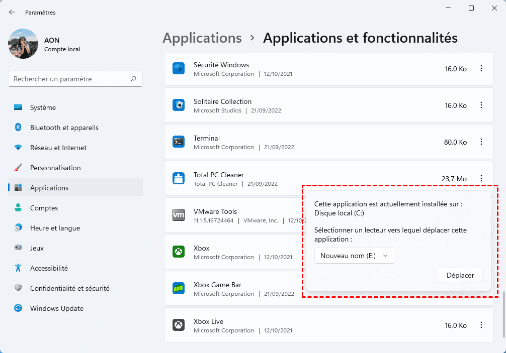 Méthode 1 : déplacer une application sur un autre disque dur sur Windows 11 via les Paramètres (fonctionne rarement)