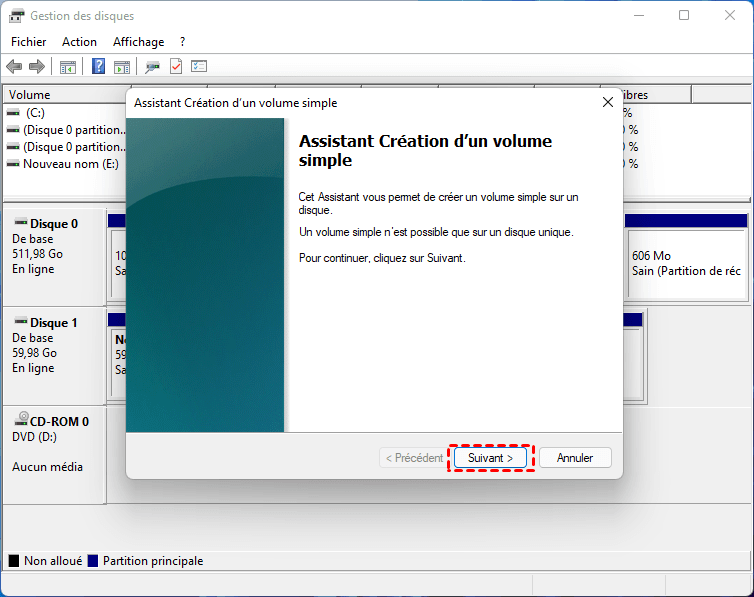 Étape 4 : Suivez l’assistant pour créer la nouvelle partition.