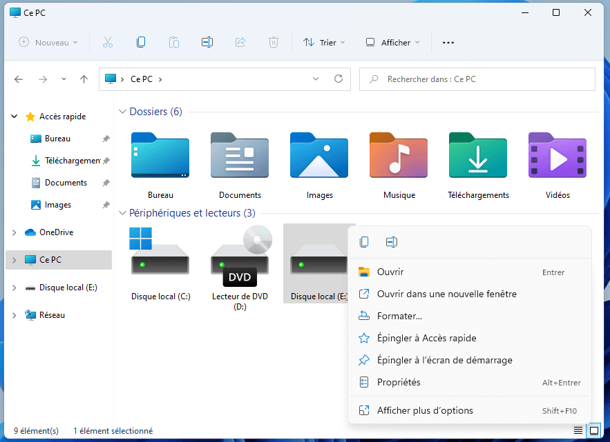 Lorsque la capacité du disque est inférieure à 32 Go, le format FAT32 est directement disponible via les outils natifs de Windows.