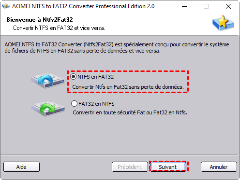 Étape 2. Cochez « NTFS en FAT32 ».