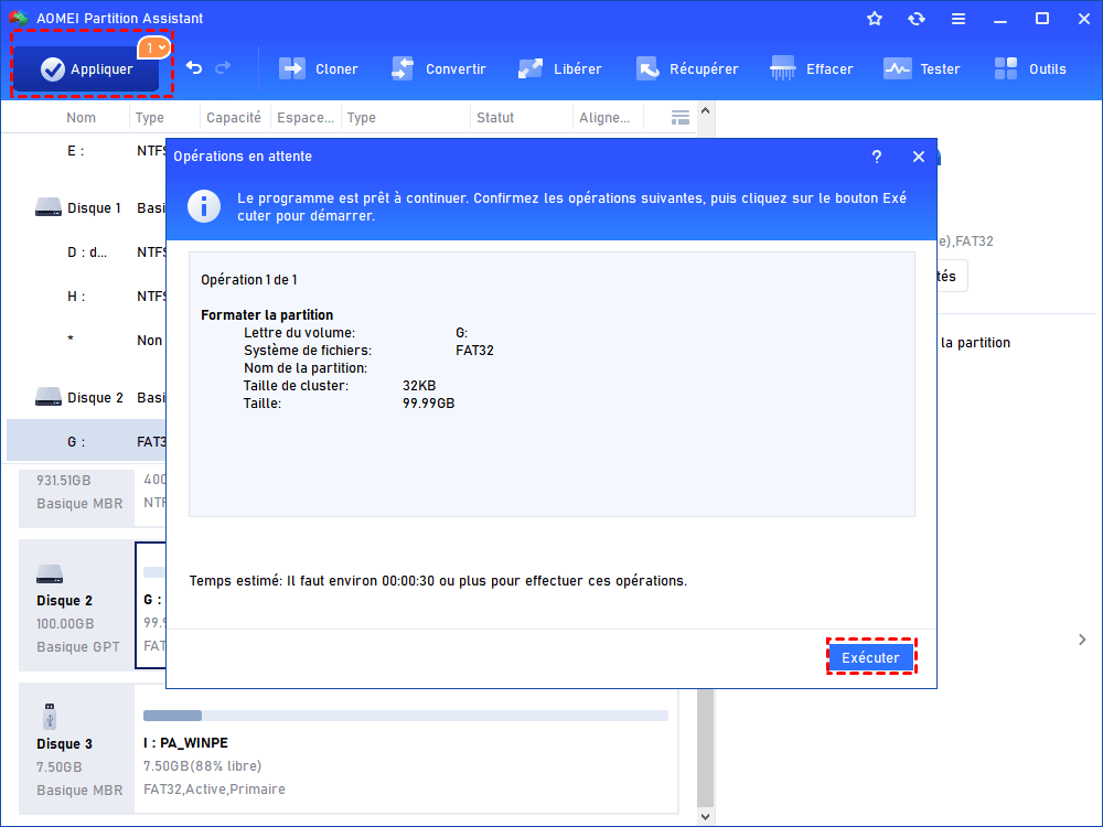 Étape 3 : Confirmez l’opération, puis cliquez sur « Appliquer » pour lancer le formatage.