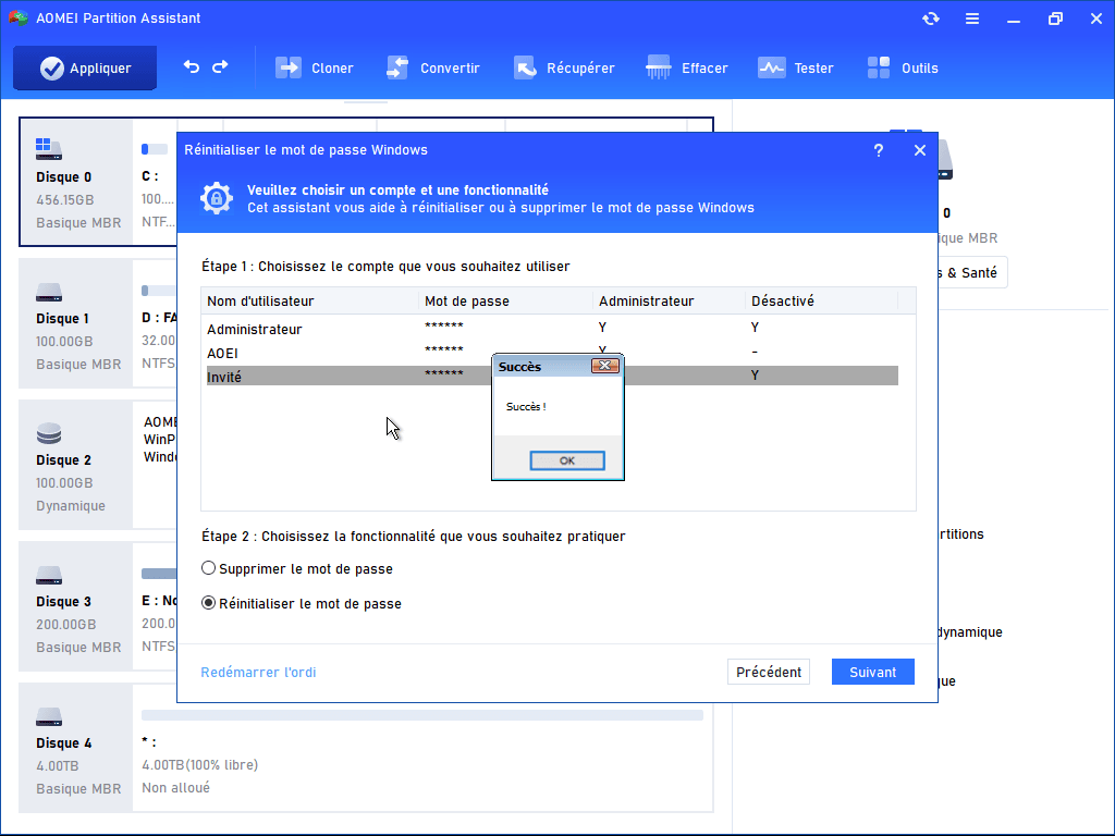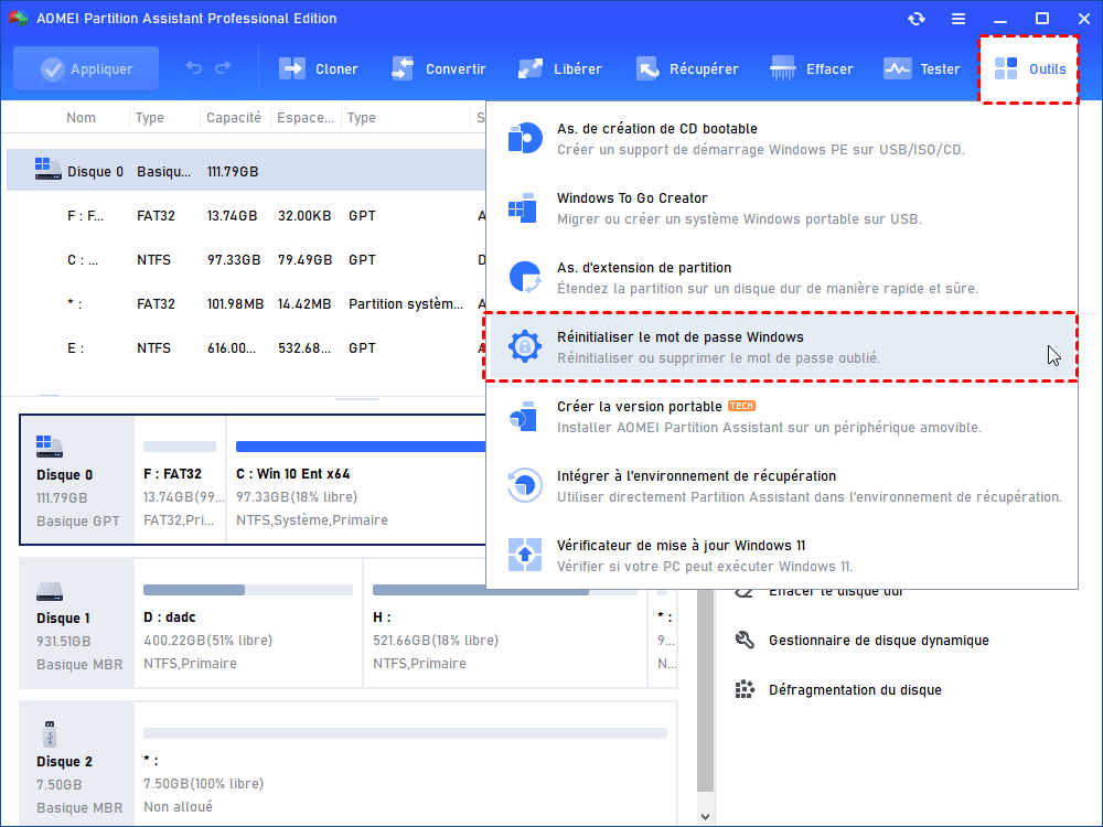 Alors, que faire lorsqu’aucun disque de réinitialisation Windows n’est disponible ? Heureusement, il existe une alternative. Certains logiciels tiers permettent de créer un support de démarrage à partir d’un autre ordinateur fonctionnel, puis de l’utiliser pour réinitialiser le mot de passe du PC concerné. Dans ce contexte, AOMEI Partition Assistant constitue une solution permettant de réinitialiser le mot de passe d’un compte local sans réinstaller Windows ni supprimer les données existantes.