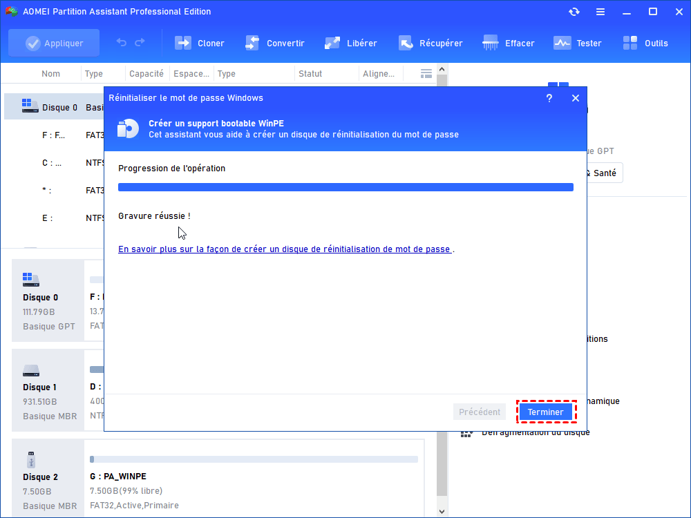 Étape 8 : Lorsque l'opération est terminée, cliquez sur OK.