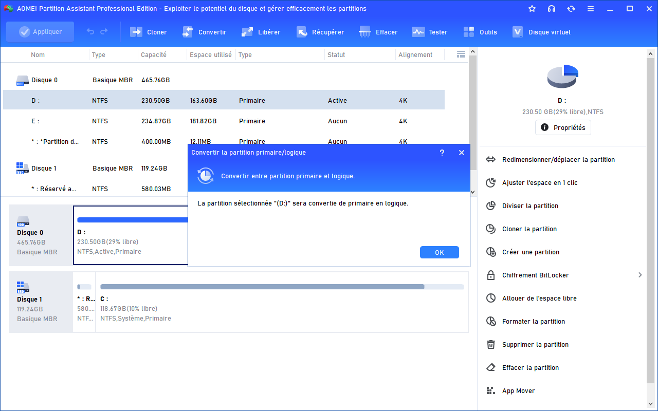 Le logiciel de partition AOMEI est justement conçu pour ça. Il permet de créer, modifier, formater ou redimensionner vos partitions sans prise de tête. L’interface est claire, et même si vous débutez, vous pouvez vous en sortir facilement.