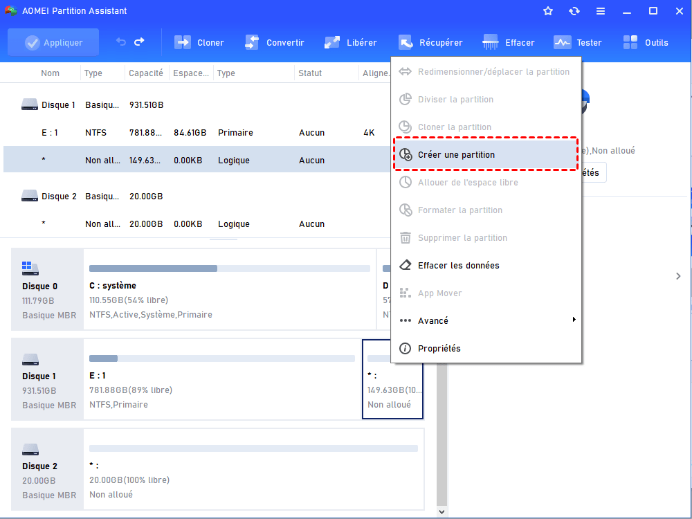 Méthode 2 : Partitionner un disque dur externe avec Logiciel de partition AOMEI