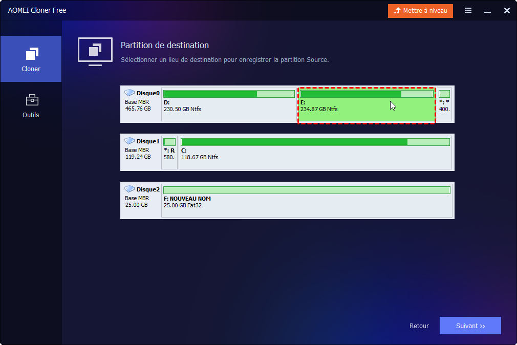 3. Choisissez la partition source que vous voulez copier, puis sélectionnez la partition de destination.