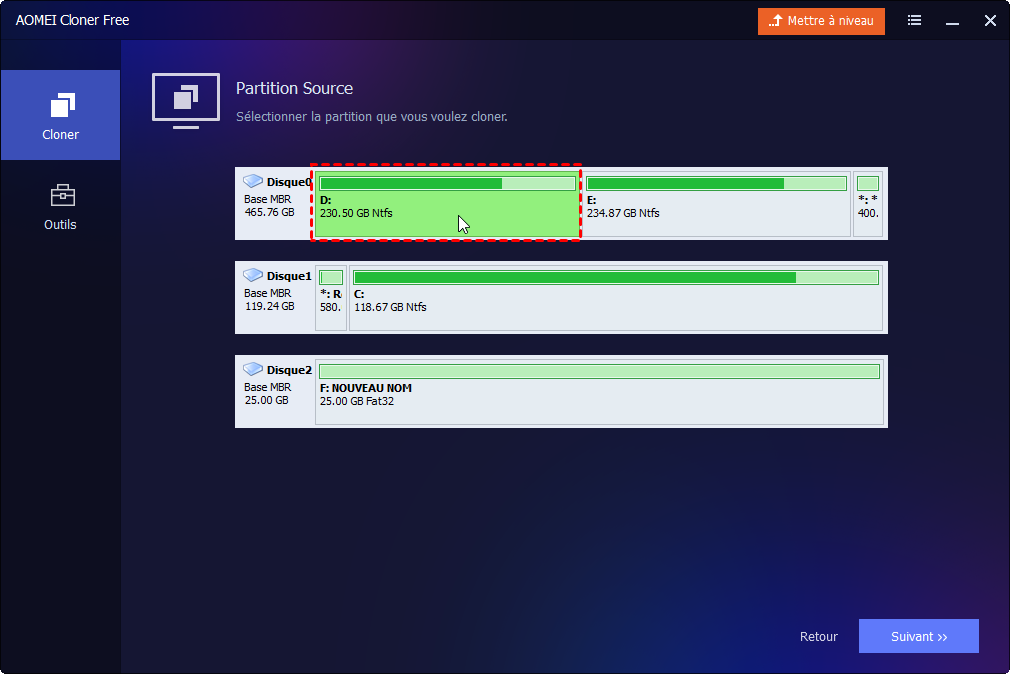 Pour une expérience fluide et sans prise de tête, il vaut mieux choisir un logiciel clair et efficace. AOMEI Cloner, par exemple, se démarque par sa simplicité et sa rapidité. Il permet de cloner des partitions ou des disques entiers sans aucune difficulté, tout en restant 100% gratuit. Vous allez découvrir plus dans la suite.