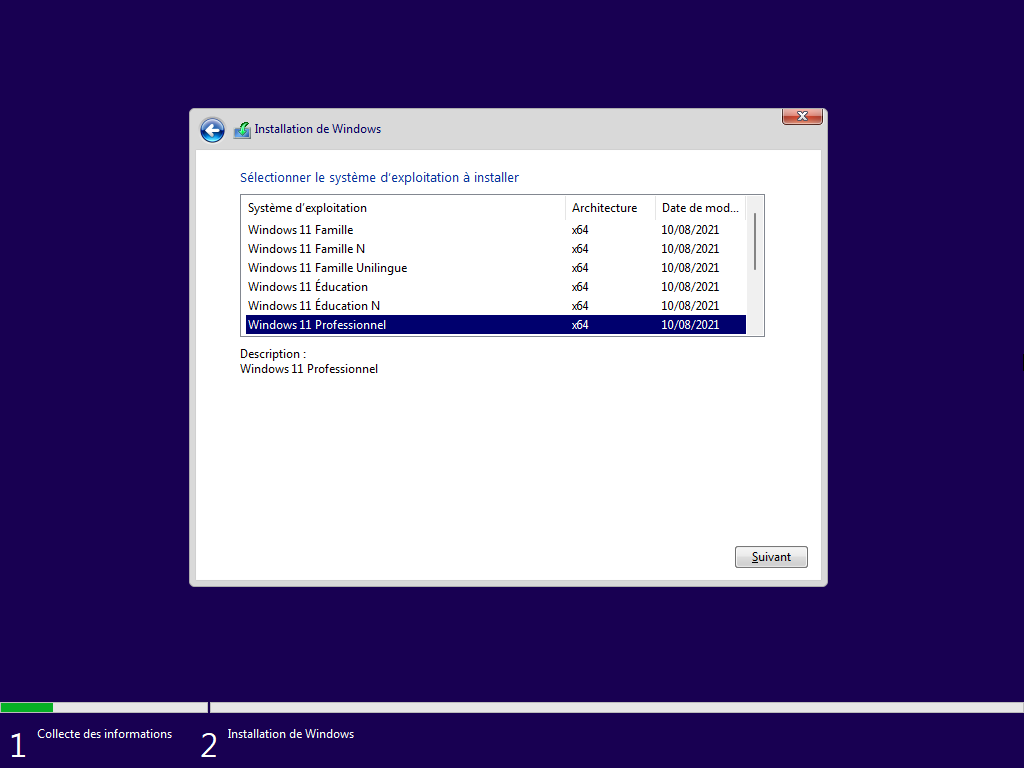 7. Sélectionnez l’édition de Windows 11 correspondant à votre licence et cliquez sur « Suivant ».