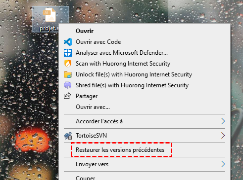 1. Faites un clic droit sur le fichier Illustrator endommagé. Cliquez sur Restaurer les versions précédentes.