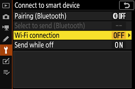 2. Activez le Bluetooth et la connexion WiFi sur votre appareil photo Nikon.