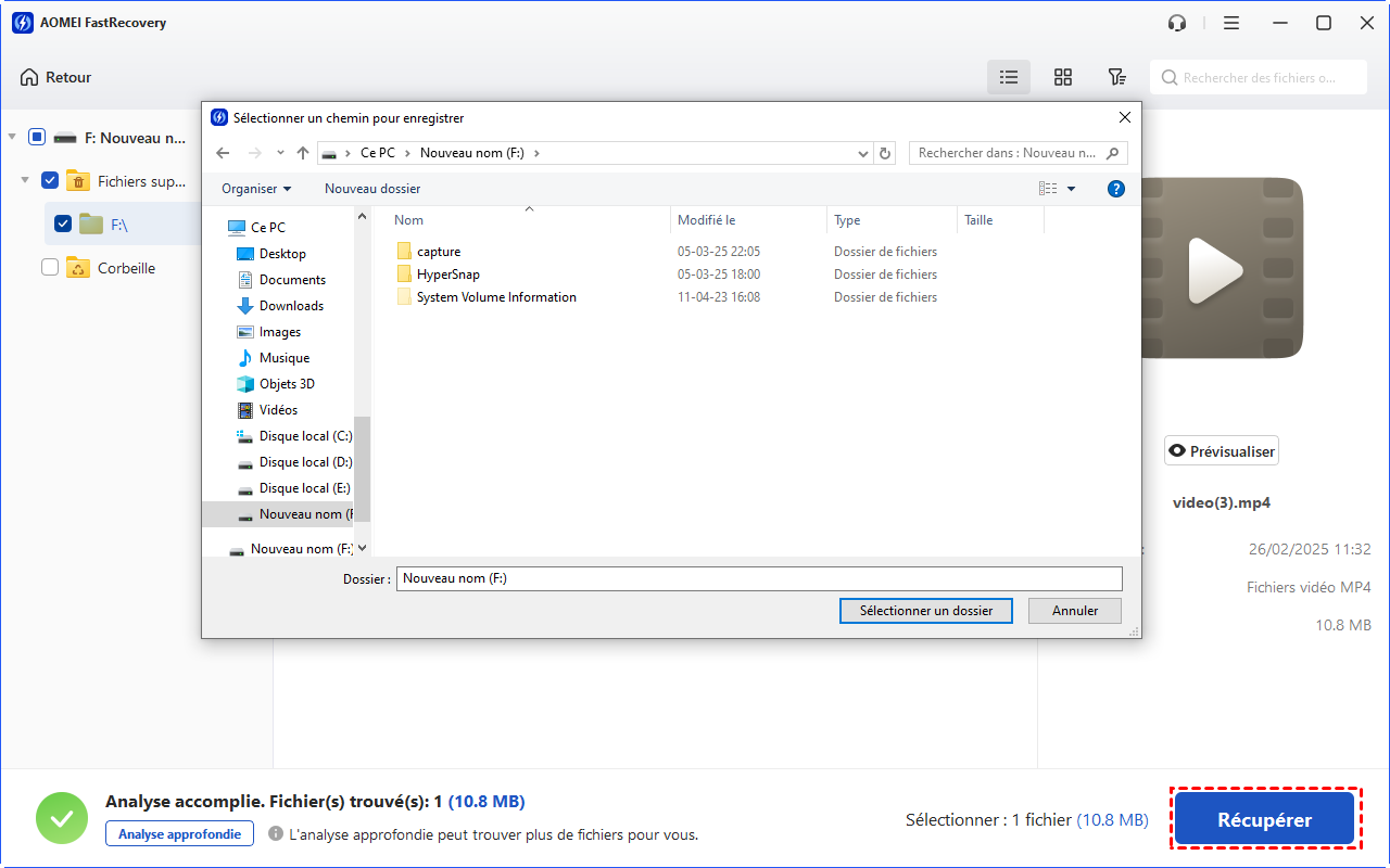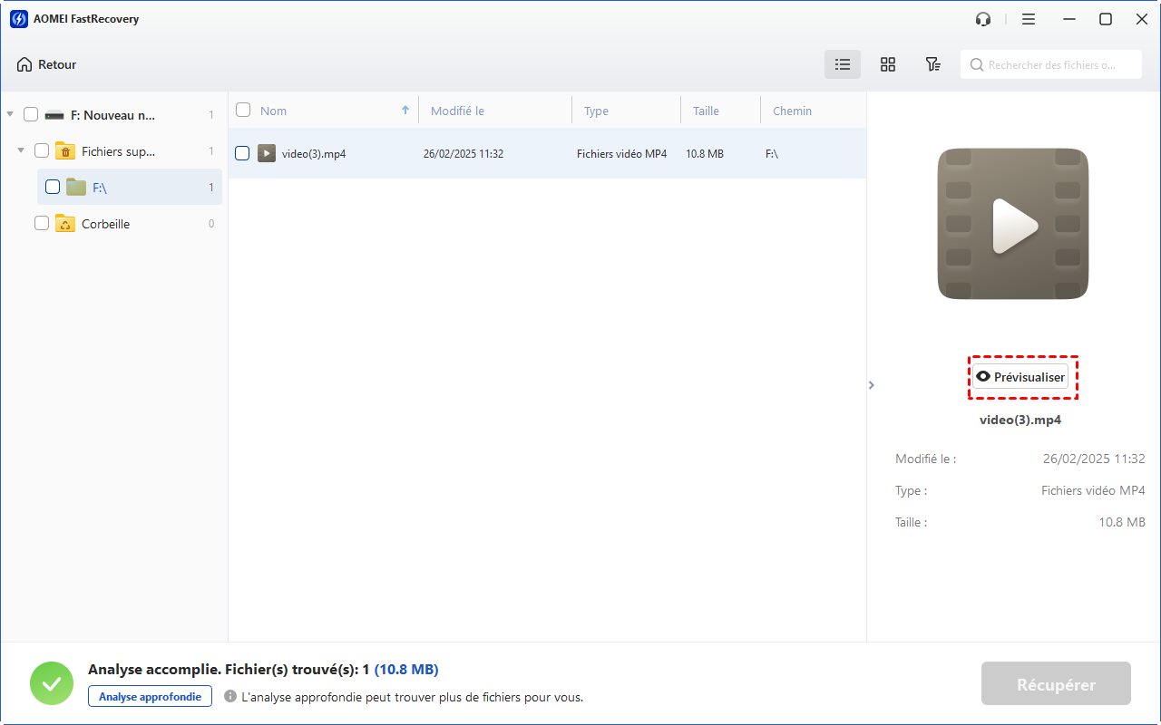 ✔ Récupérer une vidéo MP4 illisible avec AOMEI FastRecovery