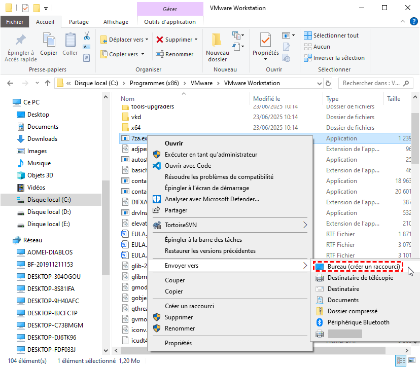 2. Faites un clic droit sur le fichier .exe, cliquez sur "Envoyer vers" puis sur "Bureau (créer un raccourci)" pour générer un nouveau lien fonctionnel.