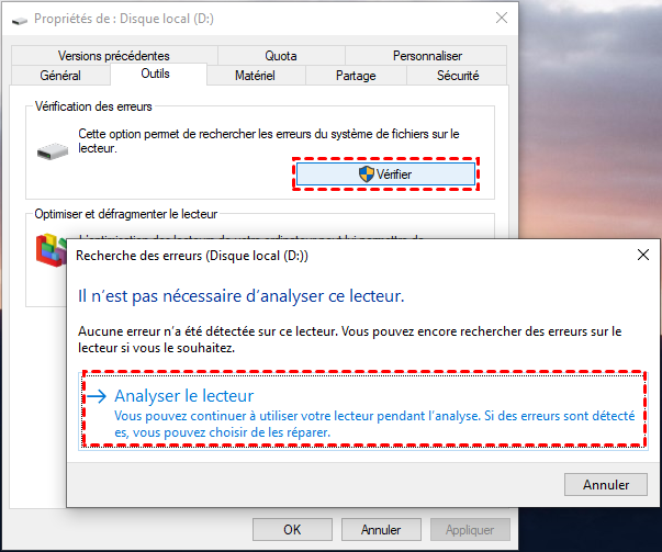 - Windows peut corriger certaines erreurs logiques qui bloquent la lecture.