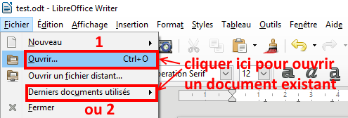 2. Cliquez sur le menu Fichier situé en haut à gauche de la fenêtre principale de LibreOffice. Sélectionnez l’option Ouvrir afin d’afficher l’explorateur de fichiers.