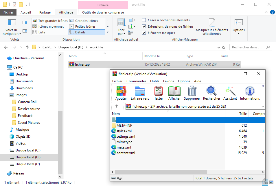 Un fichier ODT est en réalité une archive compressée qui contient plusieurs fichiers internes. Même lorsque le document ne s’ouvre plus du tout, le texte principal peut encore être présent dans ces fichiers. Cette méthode permet d’accéder directement au contenu lorsque les autres solutions échouent.